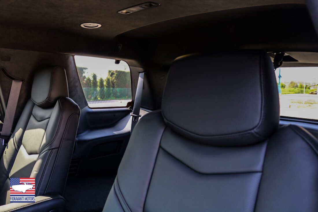 Dentro il Cadillac è un vero salotto con tanta pelle, legno e materiali soft-touch che creano una sensazione di pace e relax per affrontare col massimo comfort i viaggi di lavoro o con la famiglia. La tecnologia non può mancare col sistema d’infotainment con comandi a sfioramento, il cruscotto completamente digitale e il doppio schermo LCD per i passeggeri posteriori che riproduce DVD, Blue-Ray o contenuti in chiavetta USB.