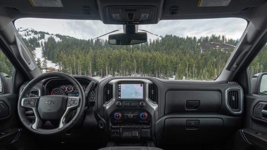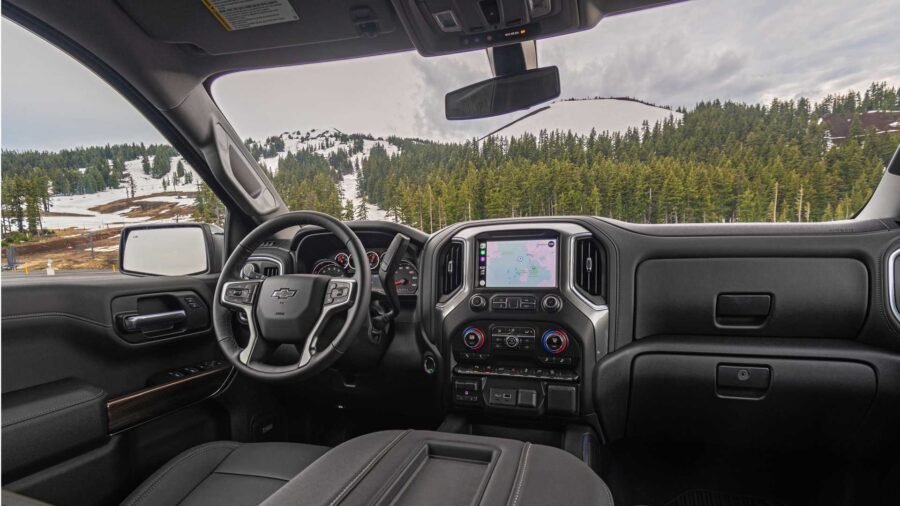Gli interni del Silvardo Duramax mantengono lo stesso livello di lusso delle versioni benzina. L’abitacolo è rivestito in pelle con dettagli in legno per esaltare la cura con cui Chevrolet ha concepito la nuova generazione del celebre pick-up americano. I sedili sono regolabili elettricamente e godono delle funzioni di riscaldamento e ventilazione. Il sistema d’infotainment da 8″ consente di comandare in modo intuitivo la navigazione e la connettività, oltre a permettere di visualizzare le telecamere del sistema Surround View 360 per agevolare le manovre anche con rimorchio.