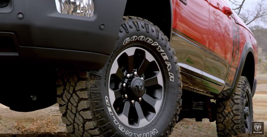 Veramente off-road anche gli pneumatici Goodyear da 33″ e con tassello profondo per garantire la massima trazione nel fuoristrada, aiutati dal sistema elettronico di gestione della trazione studiato specificamente per il Power Wagon.