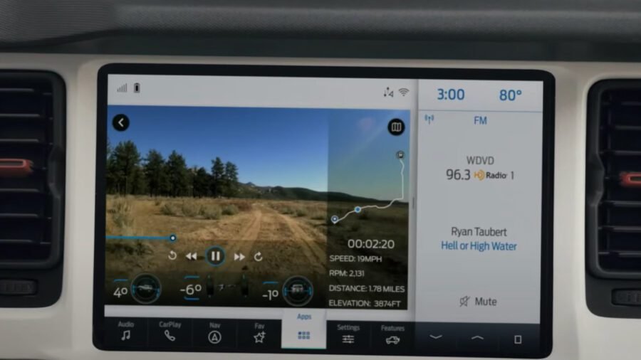Per gli amanti dell’avventura e del video editing, è inoltre possibile montare la propria GoPro sul Bronco o utilizzare le telecamere già equipaggiate sul fuoristrada. Come su diverse supercar di ultima generazione, anche sul Ford Bronco il video registrato può vedere l’aggiunta della telemetria per avere in sovrimpressione nel video diversi dati sul percorso effettuato.