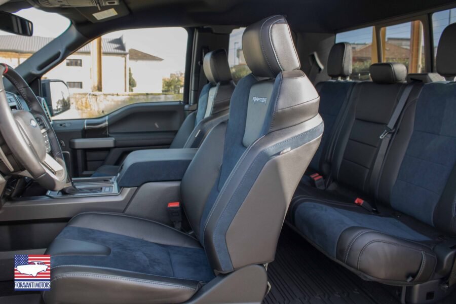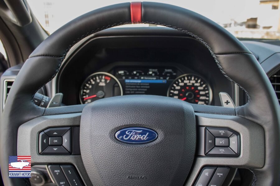 Gli interni conservano lo stile della precedente versione con l’aggiunta di alcune preziose finiture. Il nuovo Raptor può contare sulla scritta “Raptor” all’interno della corona del volante. Sono inoltre presenti dettagli in fibra di carbonio per la leva del confermatissimo cambio automatico a 10 rapporti.