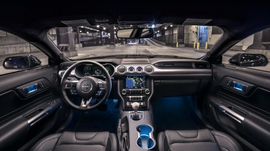 Caratteristica la leva del cambio manuale a 6 marce con pomello bianco, per richiamare proprio quello della Mustang guidata nel film.