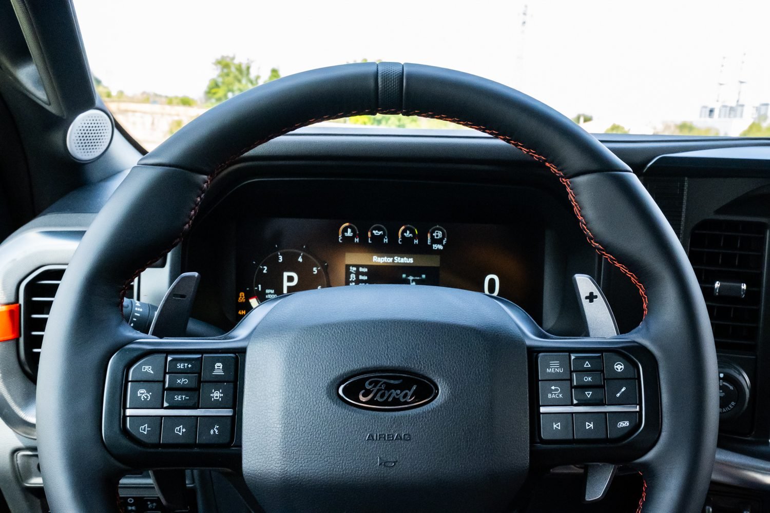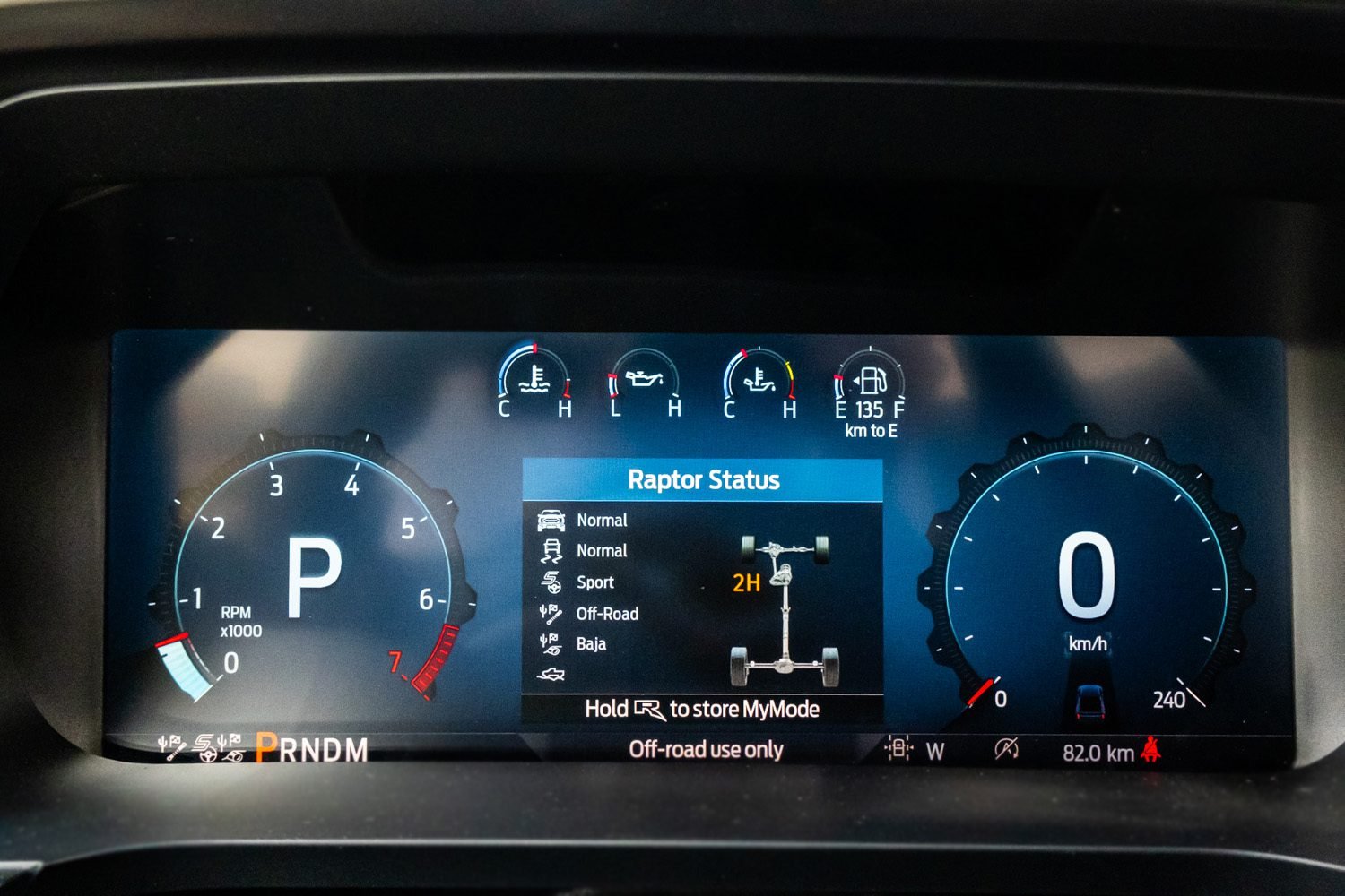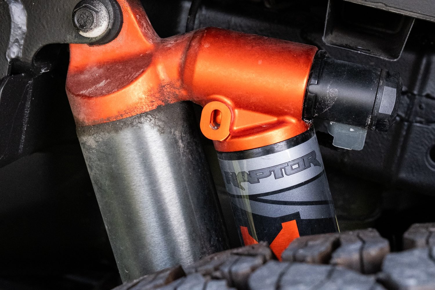 Disponibile anche con ruote all-terrain da 37″, il nuovo Raptor ha un angolo d’attacco massimo di 33,1° e un’altezza da terra di 33 cm per superare ogni ostacolo. Nel fuoristrada aiutano anche gli ammortizzatori Fox Live Valve con internal bypass (i più grandi mai montati su un Raptor) e le 7 modalità di guida del Terrain Management System. E non manca la spinta dei 450 CV assicurata dal 3.5 V6 biturbo Ecoboost e gestita ottimamente dal rapido e collaudato cambio automatico a 10 rapporti con paddles al volante.