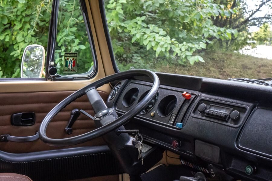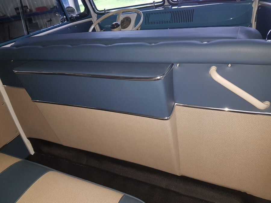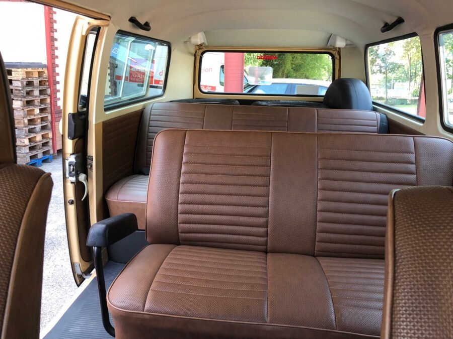 Una fase molto delicata del restauro del Volkswagen T1/T2 è sicuramente quella degli interni. A seconda dello stato dell’abitacolo e della tappezzeria, si valuta insieme al cliente se è opportuno restaurare o acquistare a nuovo le diverse parti. In quest’ultima situazione vengono presi in considerazione solo accessori e colori originali presenti in listino all’epoca.